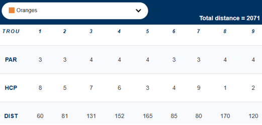 - Index requis pour le parcours 9 trous : 54