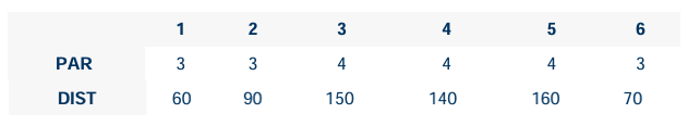 Carte de score du parcours 6 trous (repères de départ oranges)