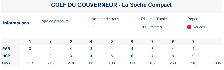 • Index requis pour le compact 9 trous : débutants acceptés